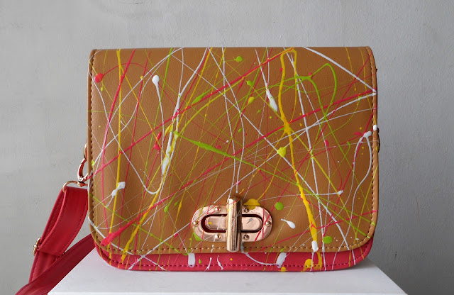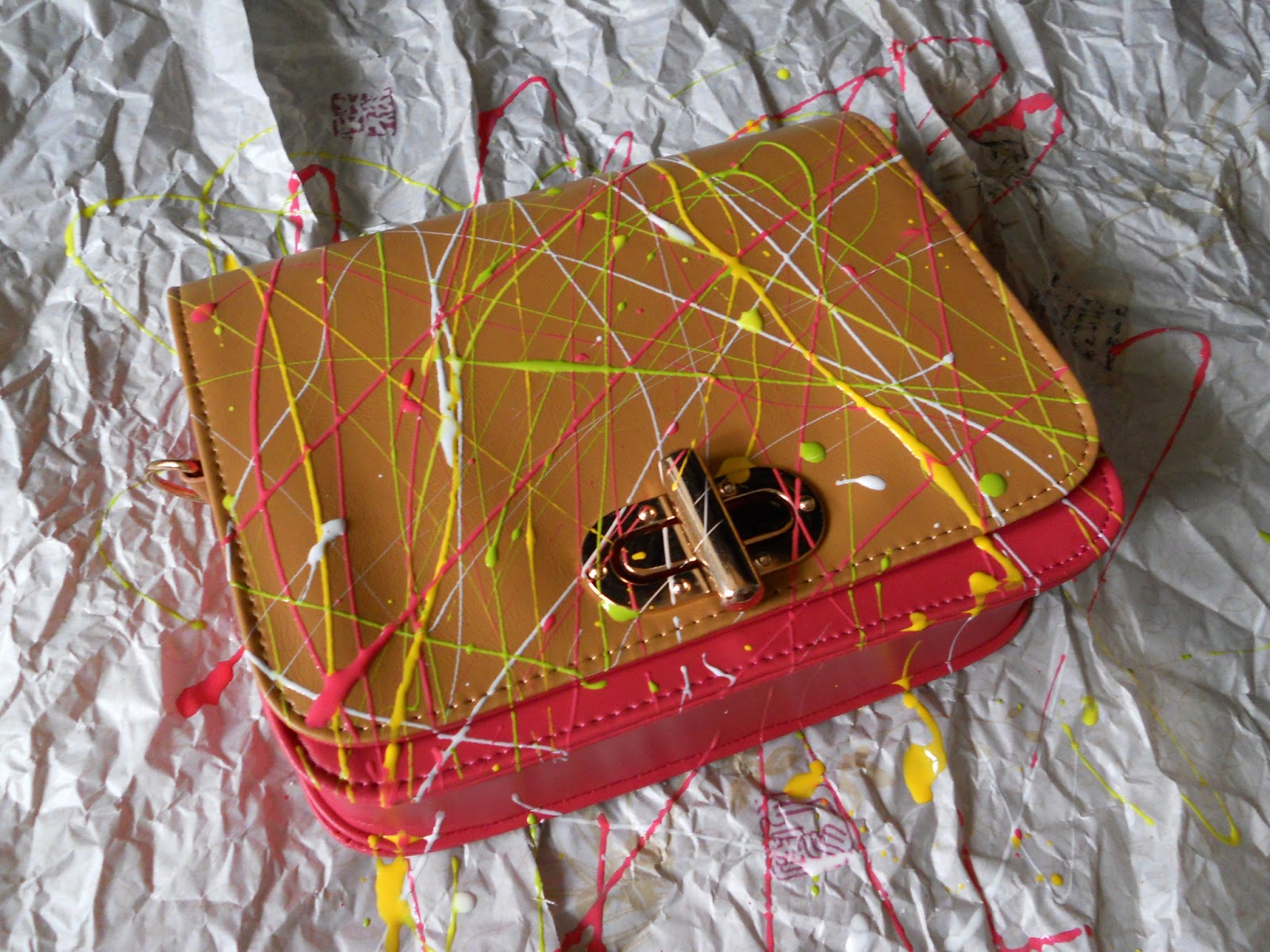 *Съвет – използването на четка отнема много време. Това, което аз направих, е да „разливам’ лака върху чантата с бързи и смели движения, докато държа ръката си стабилна.